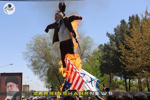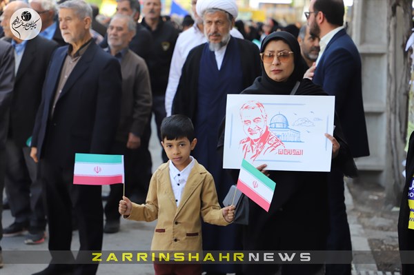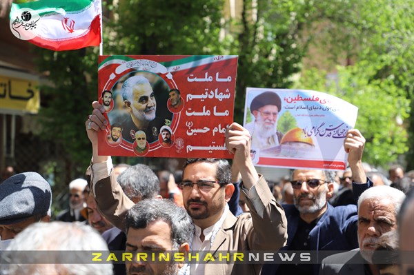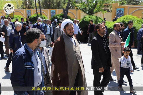 راهپیمایی روز جهانی قدس از ساعت 10:30 صبح امروز جمعه 25 فروردین در زرین شهر از میدان انقلاب اسلامی به سمت مصلای نماز جمعه برگزار شد.