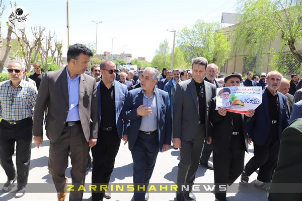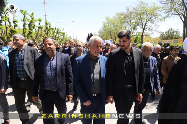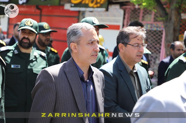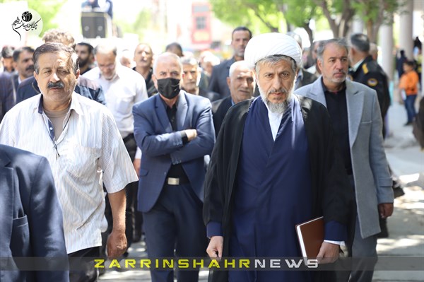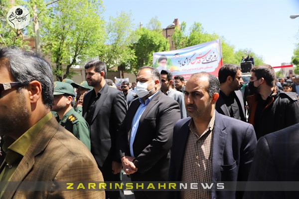 در این مراسم، شهردار و اعضای شورای اسلامی زرین شهر به همراه معاونین و مدیران شهری و جمعی از پرسنل شهرداری دوشادوش مردم ولایی و انقلابی زرین شهر در راهپیمایی روز جهانی قدس شرکت کرده و خشم و انزجار خود را نسبت به استکبار جهانی و هم پیمانانش اعلام کردند.