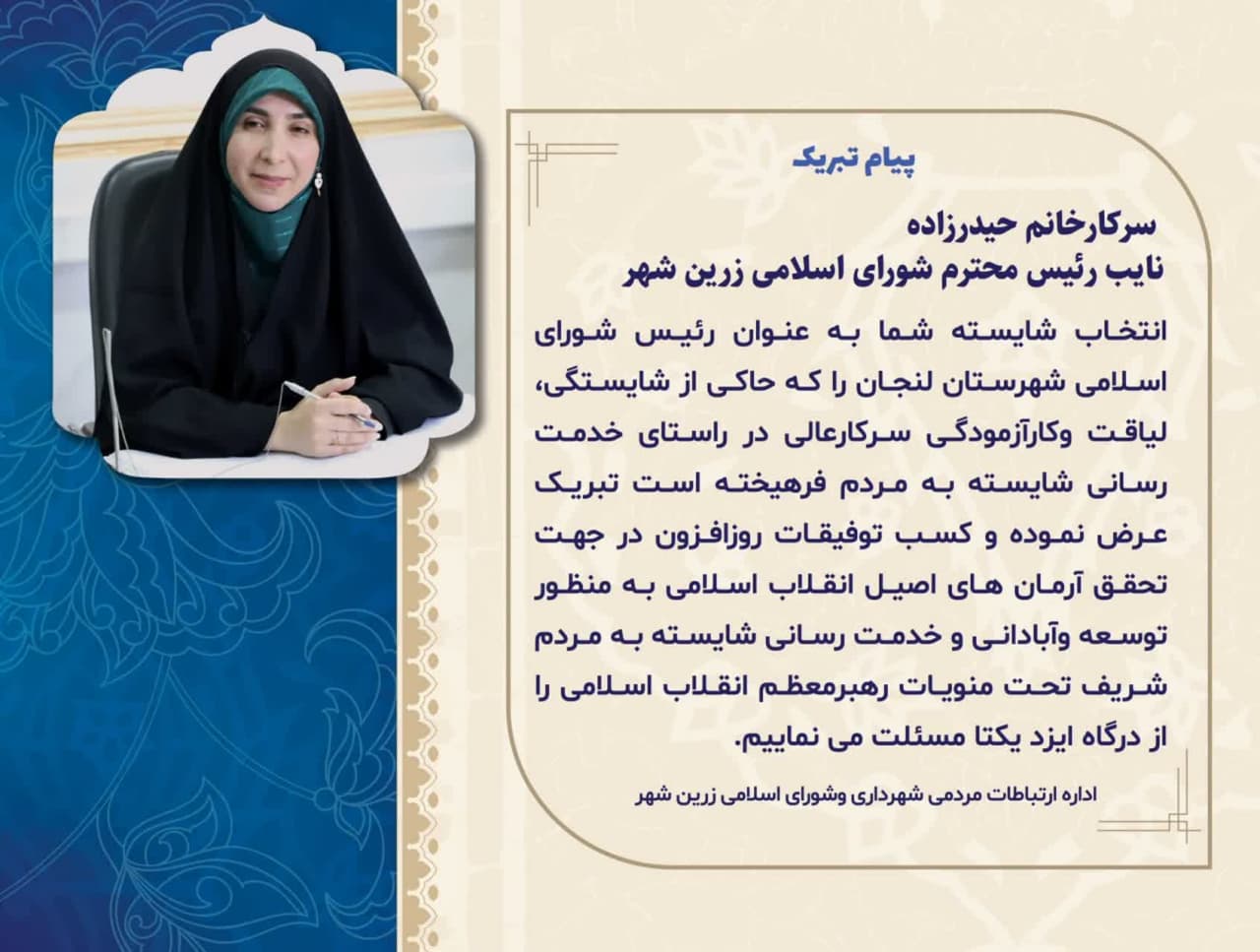 هیئت رئیسه شورای اسلامی زرینشهر در سال چهارم انتخاب شد.